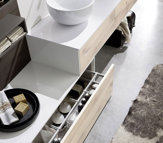 Un arredo bagno in grado di completare con eleganza e stile la tua casa. Il rovere antico, in tonalità crema, mette in risalto le venature del legno donandogli una sensualità mai vista prima. Il legno è messo in risalto dai fianchi laccati bianco lucido, che regalano ancor più luminosità all’insieme.