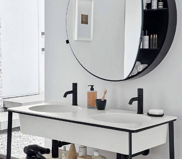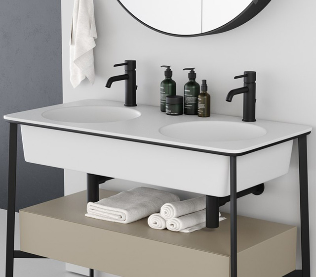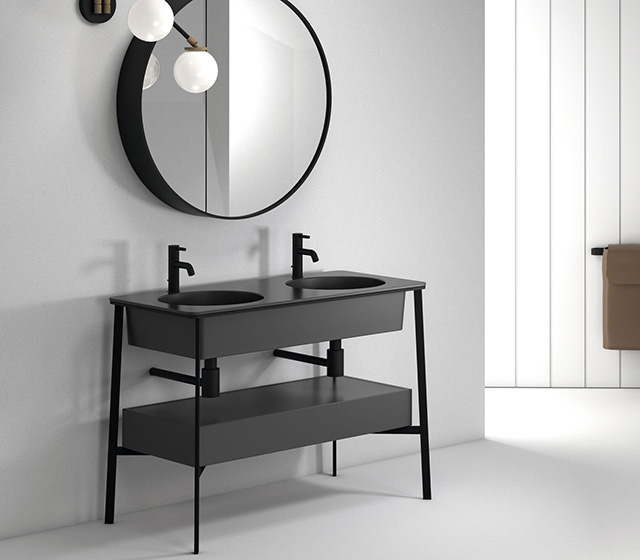 You can choose the finish of: washbasin – framework – bottom