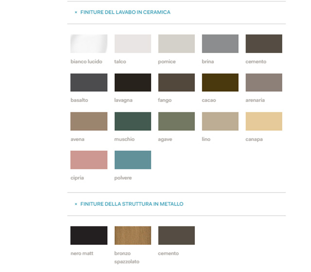 – lavabo in ceramica: disponibile nelle finiture Terre di Cielo;