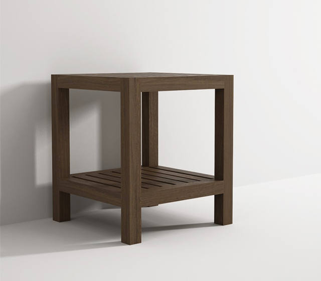 Sgabello doccia in legno massello di recupero disponibile in finitura Teak