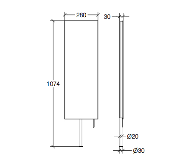 Specchio rotante filo lucido con fissaggio da piano, lato posteriore in acciaio inox.