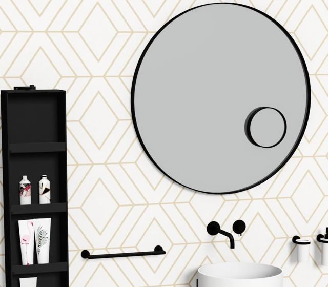 Specchio con cornice e con specchio ingranditore magnetico 5x mod. Speci in resina verniciata nera.