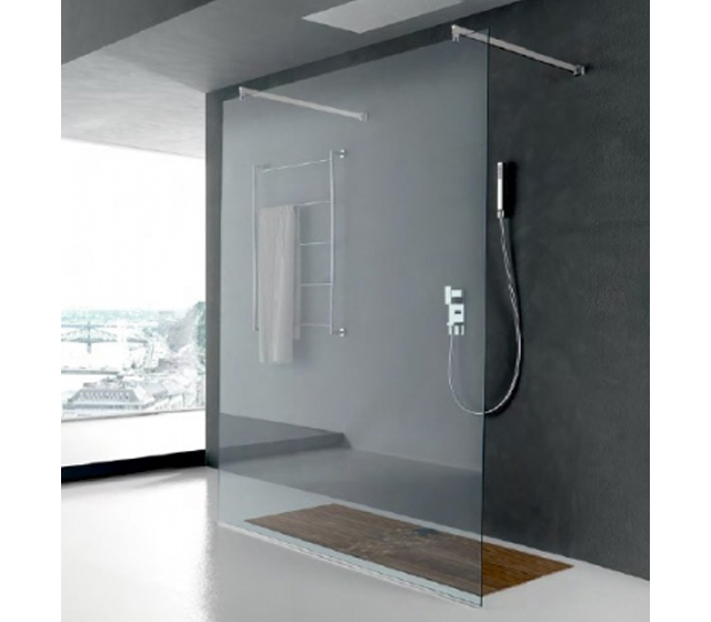 Doccia centro parete fisso mod. Mirage 150 cm in vetro 8 mm temprato trasparente.