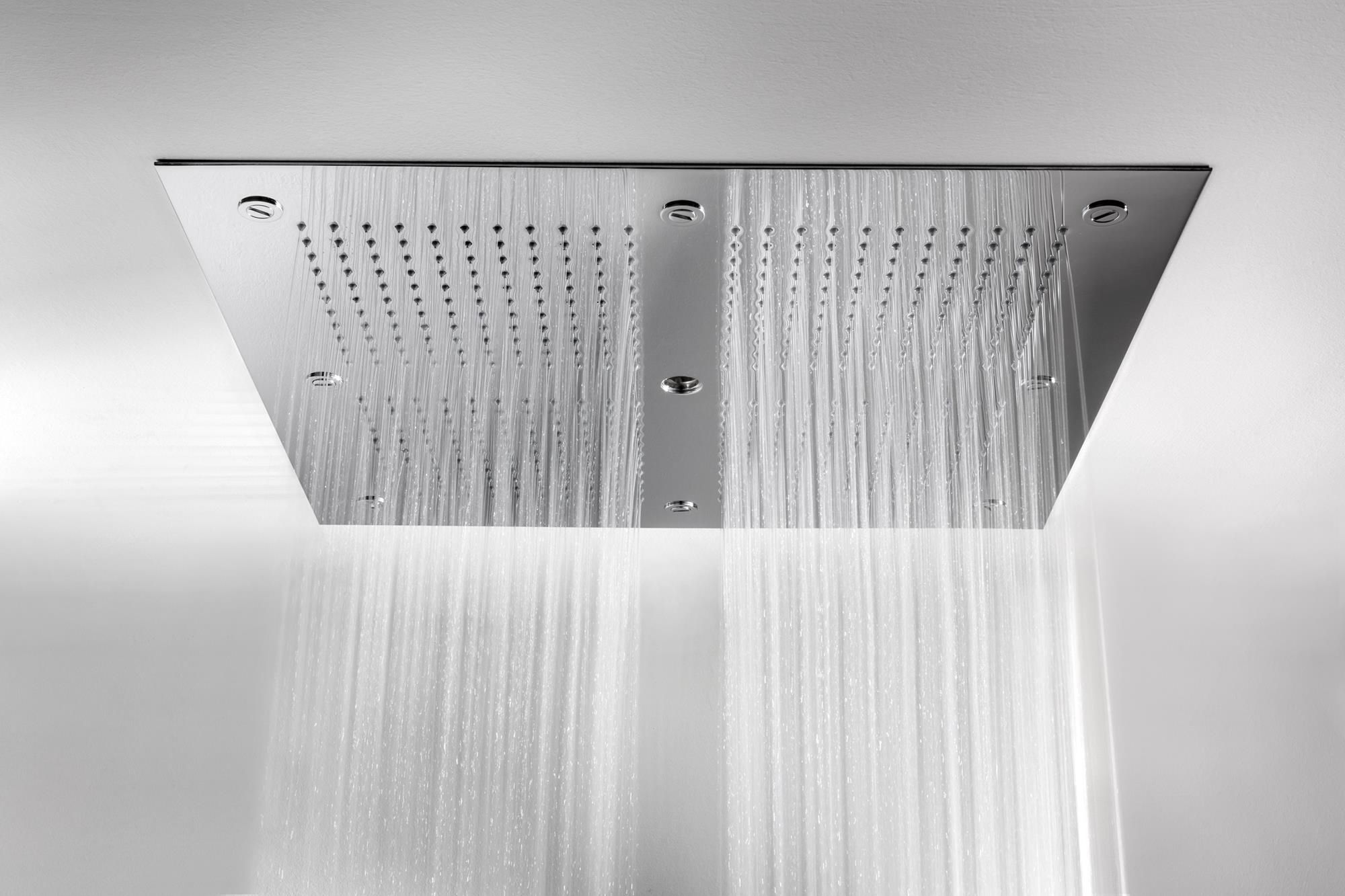 Soffione ad incasso multifunzione, 49×49 mm, in acciaio inox cromato, 484 ugelli in silicone anticalcare, ispezionabile, con 1 getton pioggia – grazie ai 484 ugelli, un getto intenso e pieno riproduce la sensazione di una rilassante pioggia sulla propria pelle.