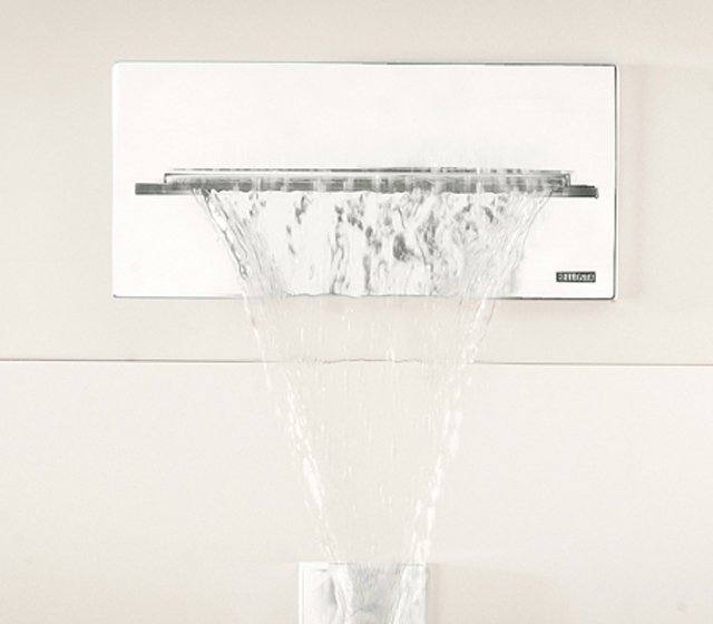 Lama ad acqua Cascate cromata a filo parete composta da parte ad incasso muro e parte esterna cromata.