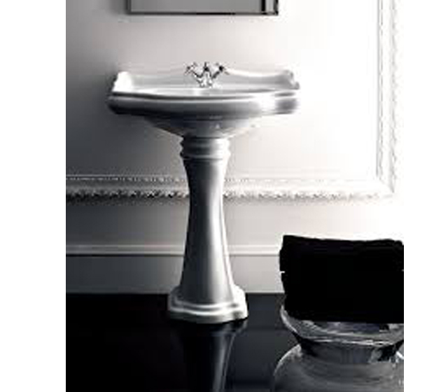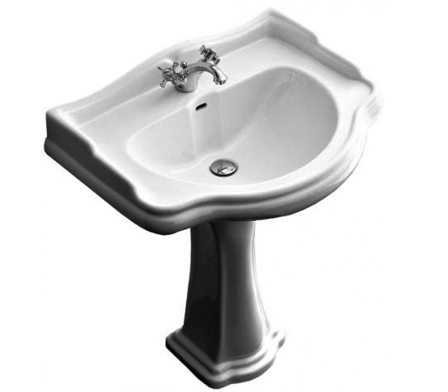 Lavabo in stile Retro’ in ceramica bianca lucida monoforo (tre fori su richiesta).