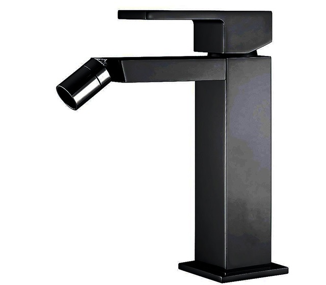 Miscelatore bidet di design, elegante e raffinato, dai profili puliti e squadrati. Miscelatore linea Tetris, finitura nero opaco.