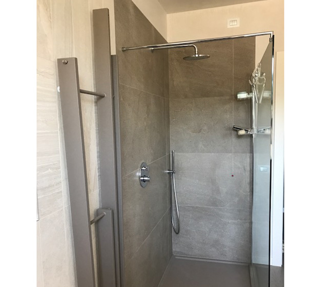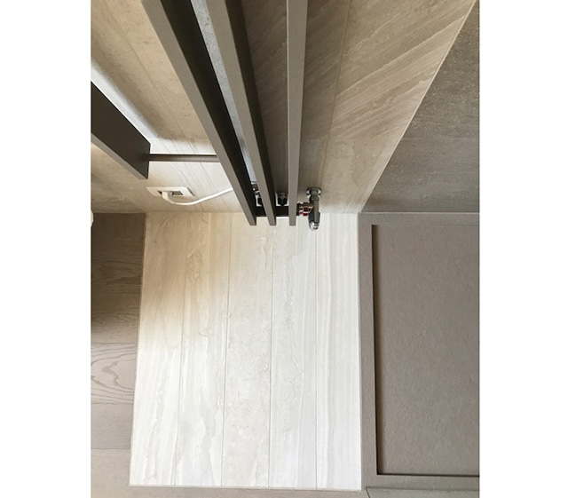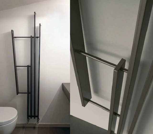Termoarredo design minimale in acciaio con finitura bianco standard utilizzabile in verticale e adatto agli ambienti più stretti del bagno.
