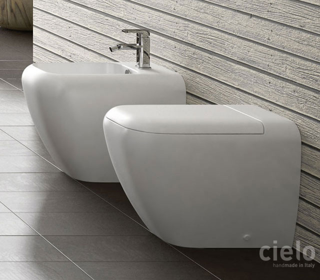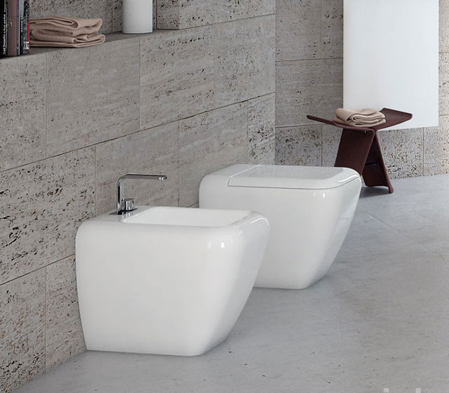WC a terra filo parete in ceramica bianca mod. Shui completo di fissaggio.
