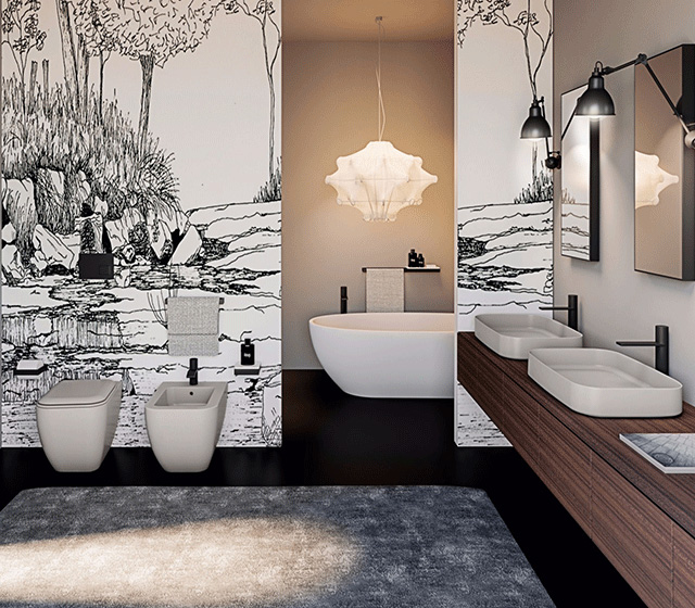 Bidet a terra in ceramica colorata modello Shui Comfort. Colori disponibili: talco, pomice, brina, arenaria, avena, cemento, basalto, lavagna.