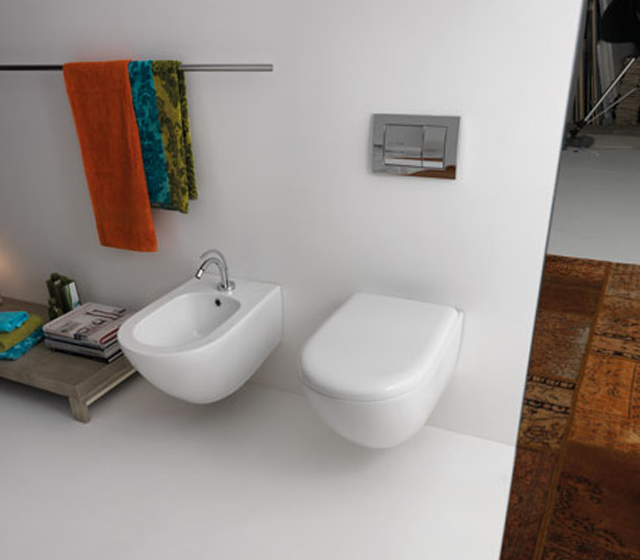 Bidet sospeso in ceramica bianca lucida mod. Aquatech completo di fissaggio.