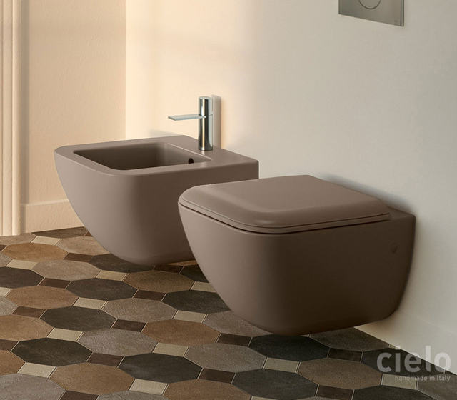 Coppia sanitari sospesi in ceramica colorata Terre di Cielo mod. Shui Comfort completo di fissaggio.