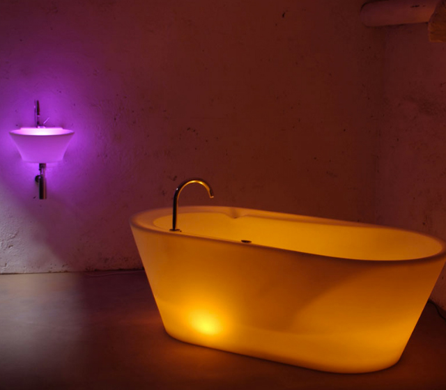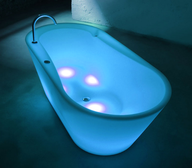 LUCE puo’ essere ordinata anche illuminata con led bianco o led RGB  – disponibile solo per vascha bianca o colorata, non in finitura nera