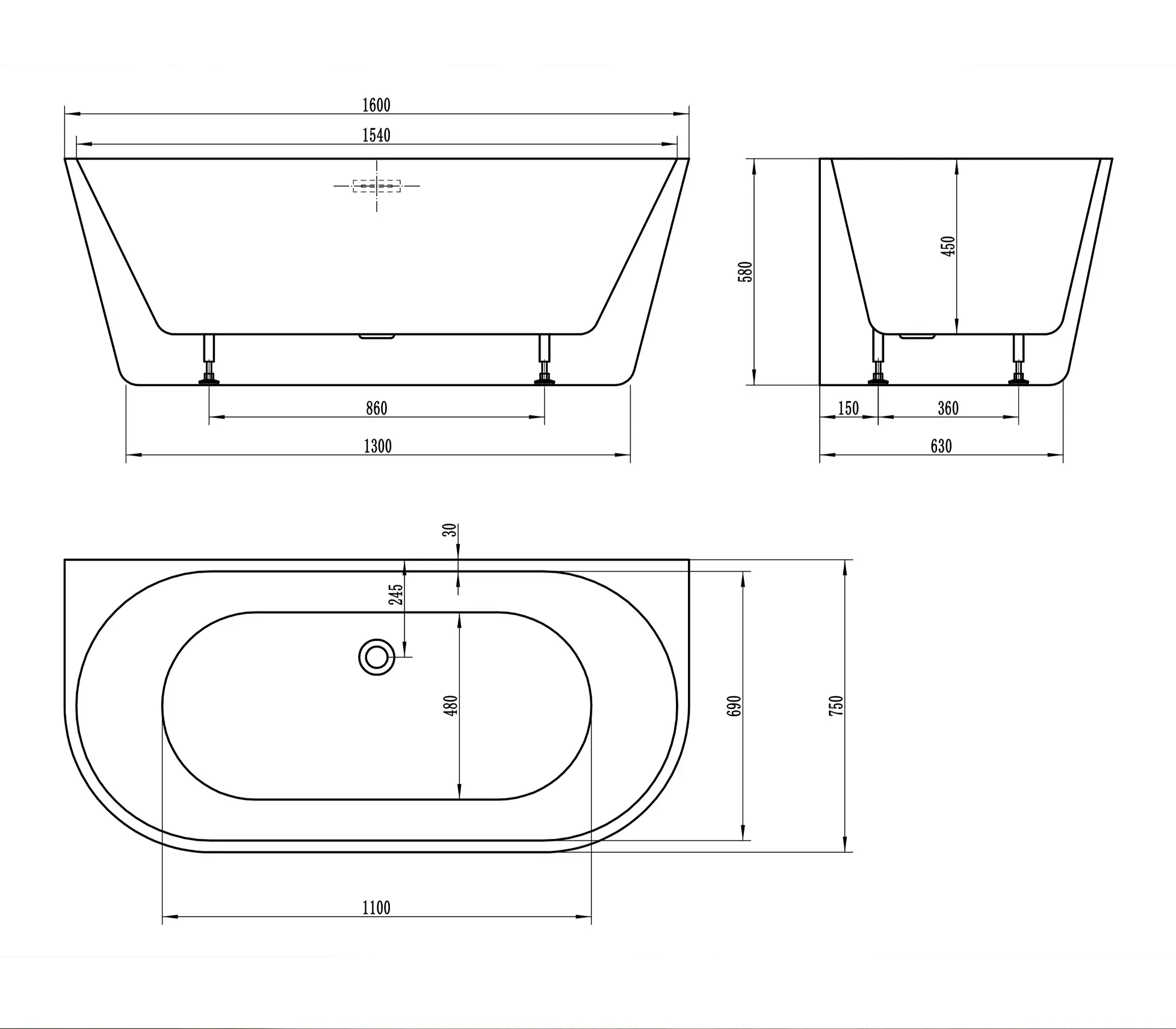 Vasca freestanding mod. Ellisse 160cm